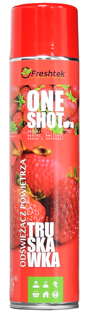 Freshtek ONE SHOT Truskawka 600 ml to totalna nowość i soczysty, intensywny zapach truskawki w formie silnie skoncentrowanego aerozolu. Określenie „One Shot” oznacza, że jedno naciśnięcie wystarcza, aby zapach szybko rozszedł się po pomieszczeniu. To rozwiązanie szczególnie polecane do większych przestrzeni, gdzie liczy się wydajność i szybki efekt odświeżenia.